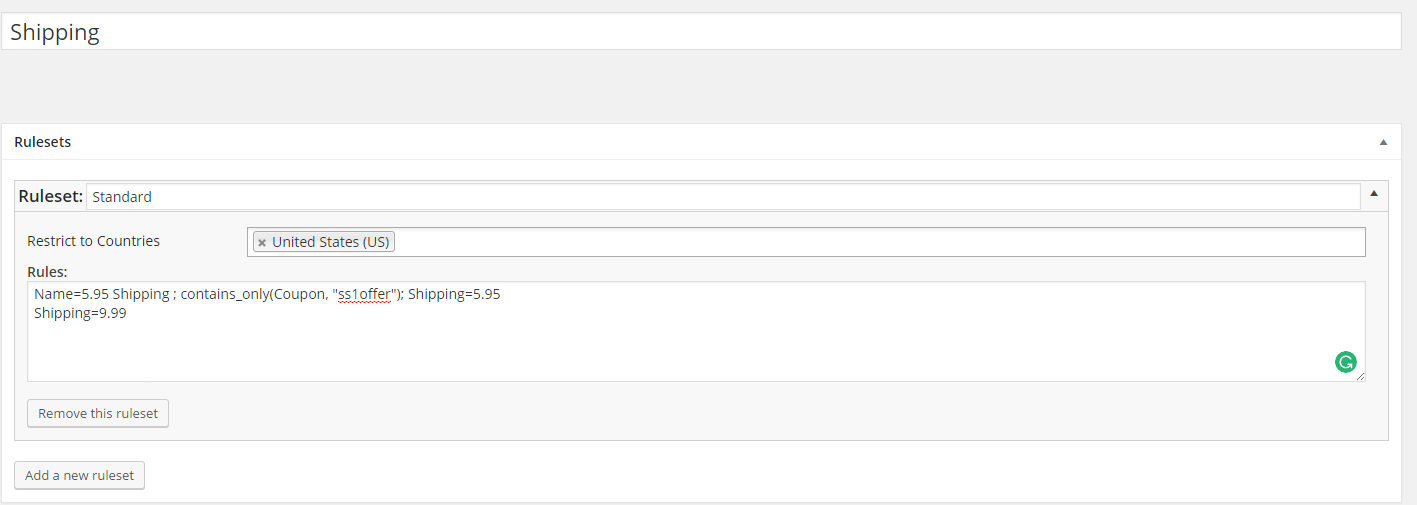 Condition=contains_only(Coupon, "Roberta"); Shipping=5.95